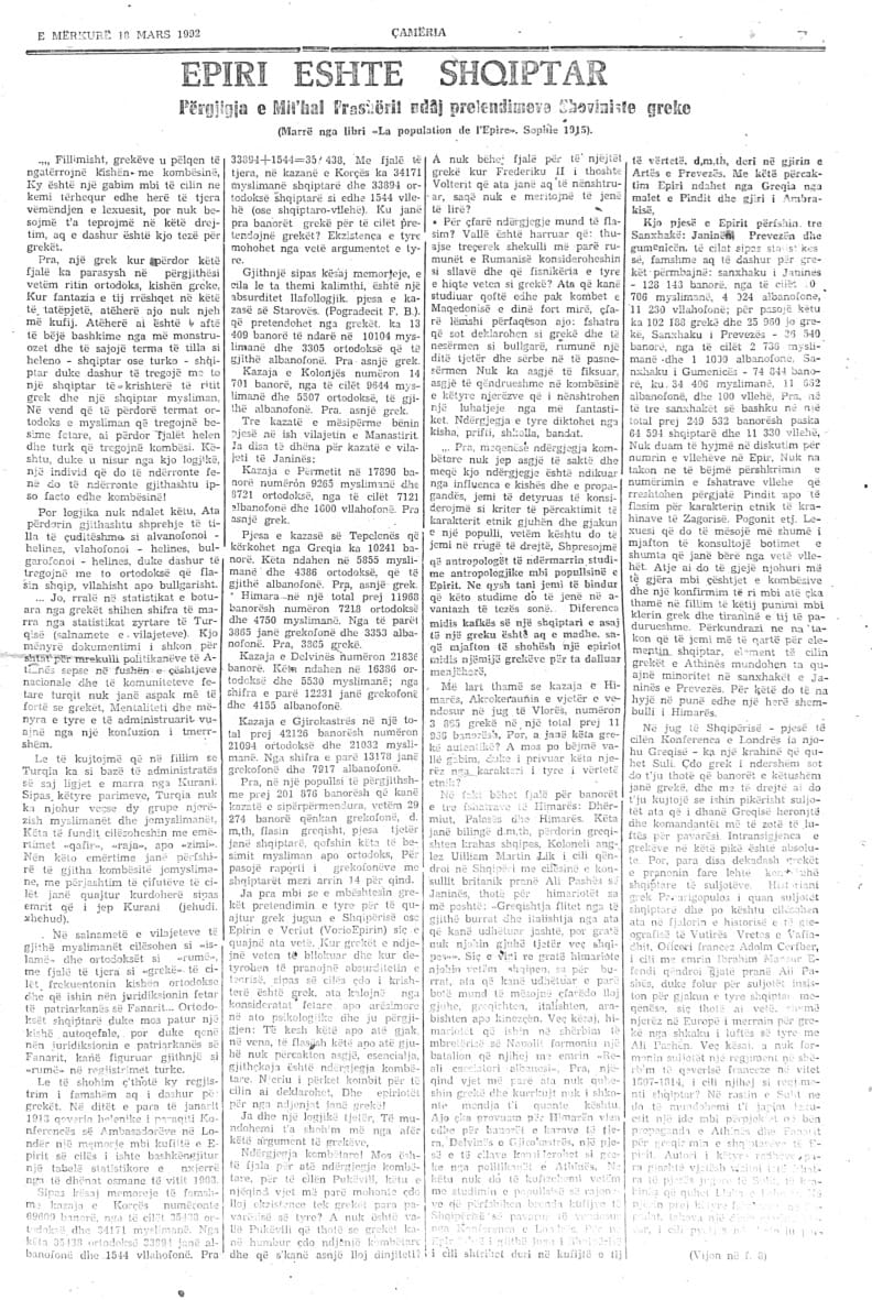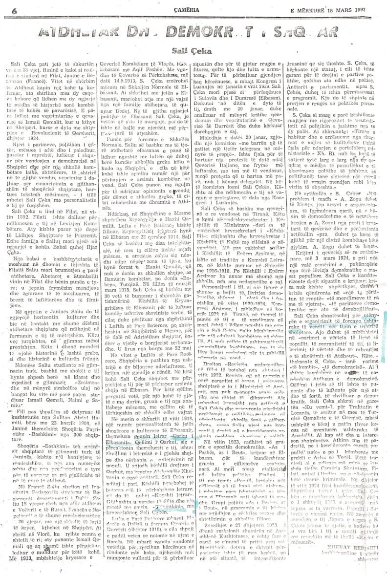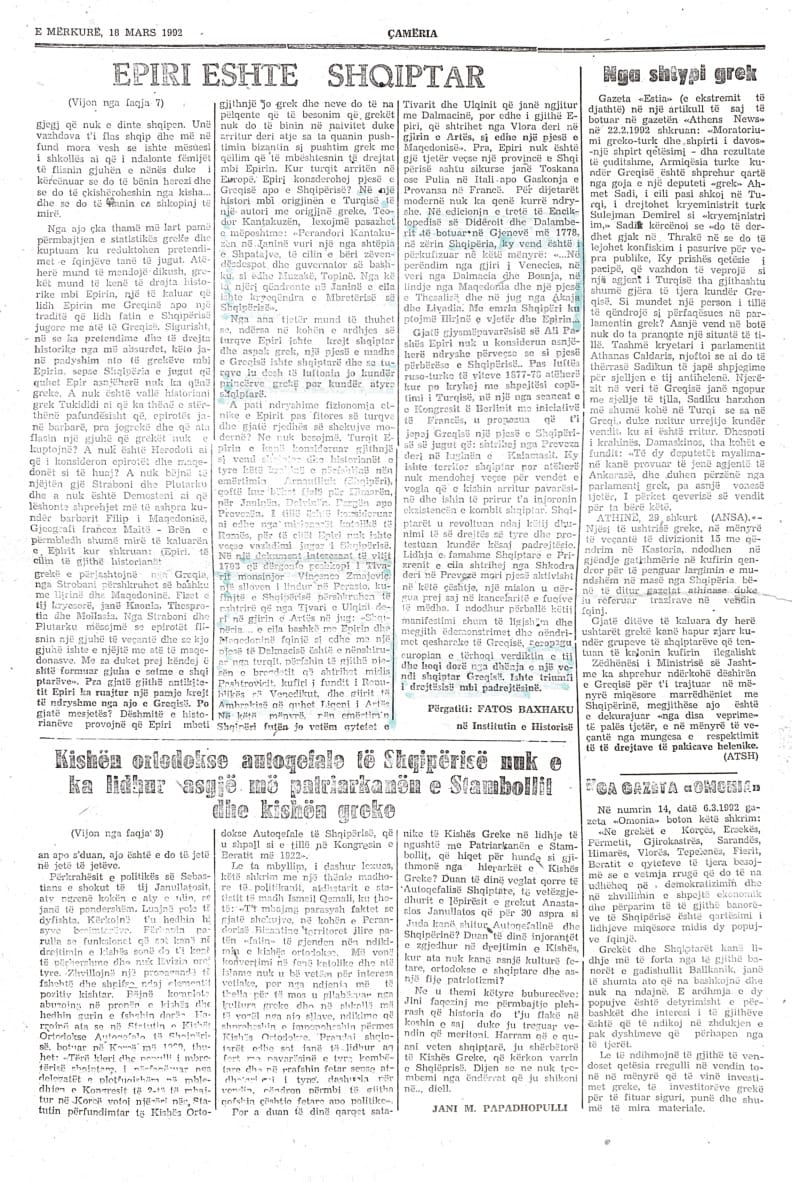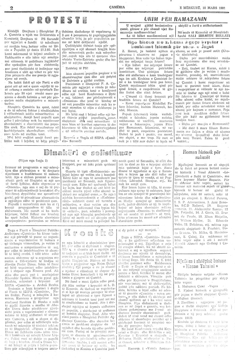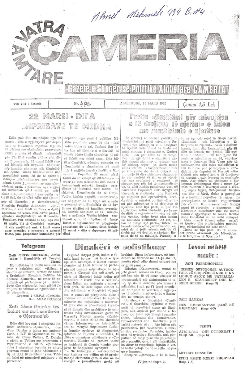 Arkivi i Gazetës Çamëria në Çamiko.al: Numri 23- të i Gazetës Çamëria – 16 mars 1992